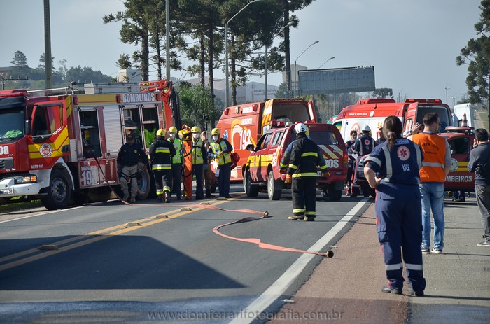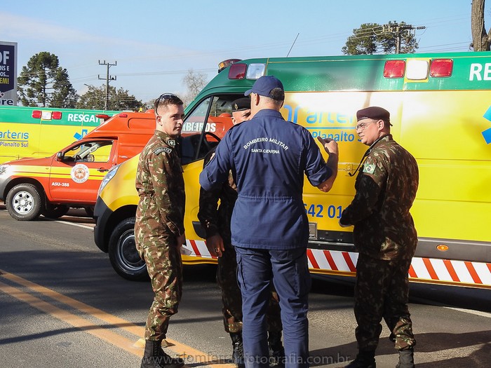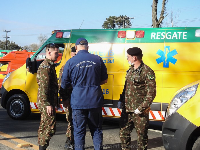 Foi mobilizado para a atuação 29 viaturas sendo: 11 Ambulâncias, 3 caminhões de Busca Resgate e Salvamento – ABTR, 1 caminhão Auto Tanque para combate a incêndios – AT , 3 caminhonetes Auto Resgate – AR, 3 caminhonetes de apoio e de Defesa Civil, 8 viaturas Policiais e do IGP, e ainda dois Drones, um utilizado para registro fotográfico e outro, o Drone HORUS-08 do CBMSC, utilizado na identificação de produtos perigosos, vÃtimas e riscos adicionais. Contou também com a atuação de 64 profissionais de diversas áreas das instituições participantes, além dos profissionais que atuaram nos ambientes hospitalares e de pronto atendimento.