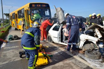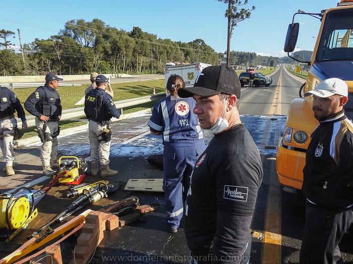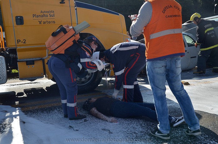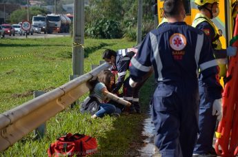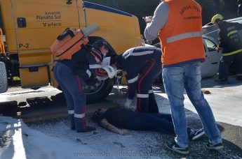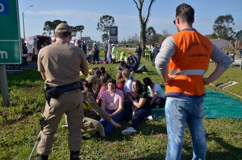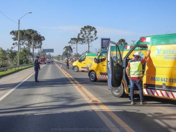 Com o acionamento iniciado à s 14h, as vÃtimas e populares que estavam no local do simulado, ligaram para os números de emergência, solicitando o atendimento da ocorrência junto à s centrais. Foram acionados os telefones: 190 da PMSC, 191 da PRF, 192 do SAMU, 193 do Corpo de Bombeiros Militar e 0800 da Arteris Planalto Sul – AutoPista.