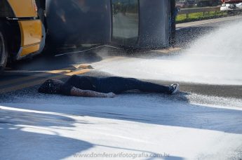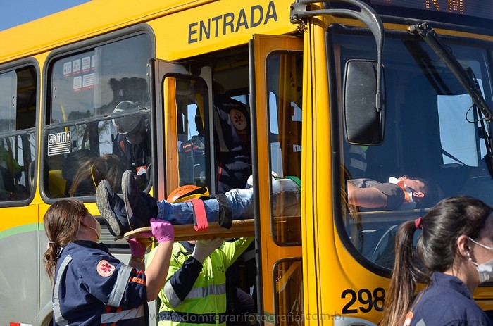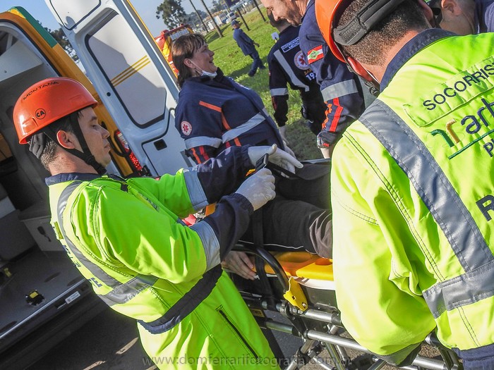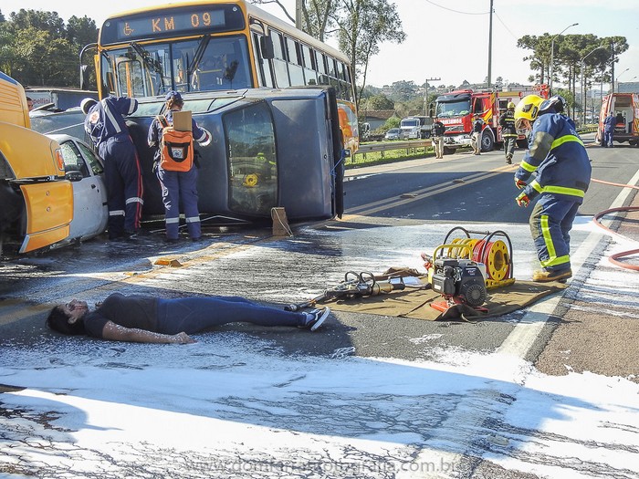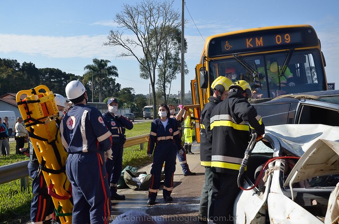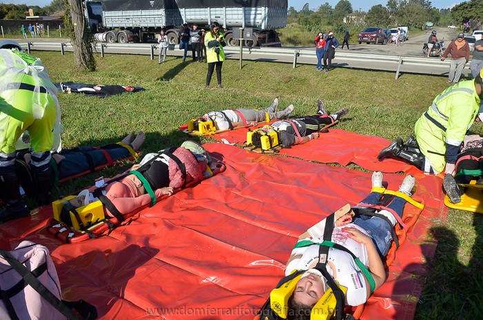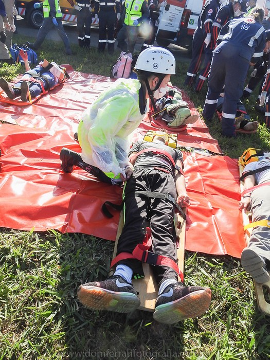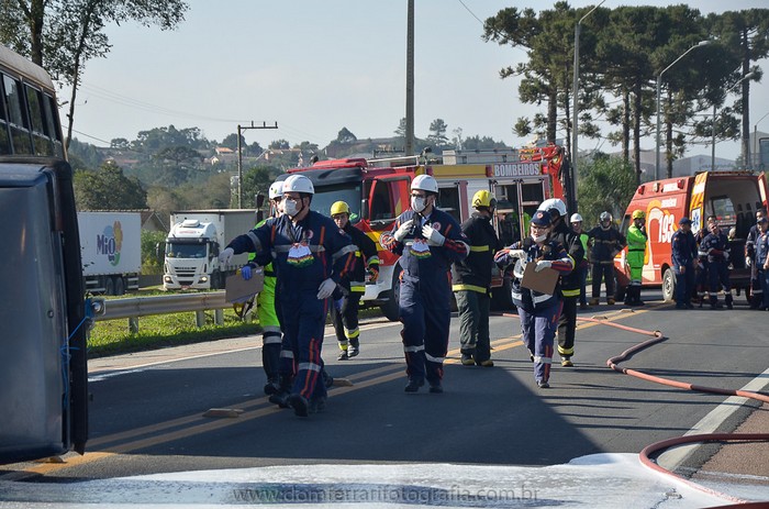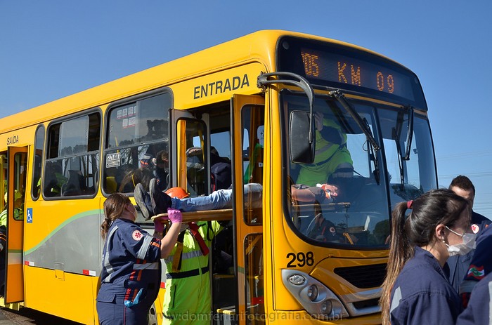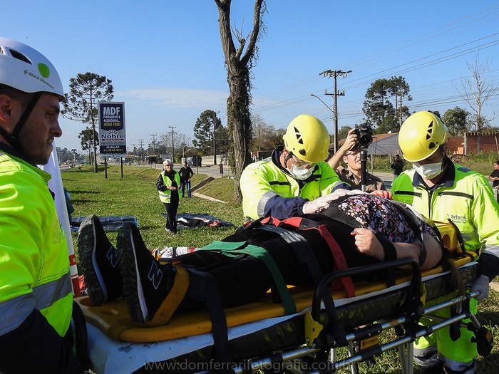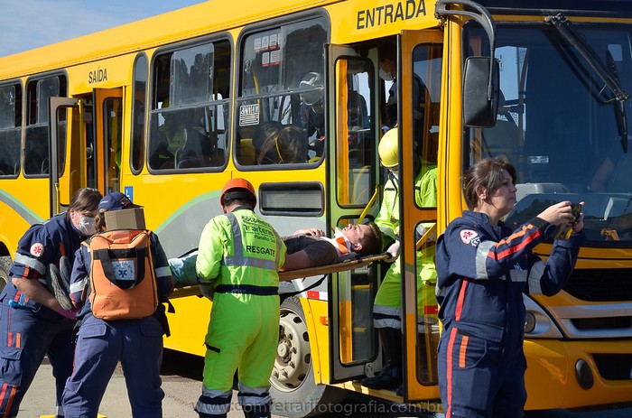 O cenário simulado foi o de um acidente de trânsito envolvendo um ônibus, dois carros e um caminhão de transporte de produtos perigosos carregado com diesel. Ao todo foram 25 vÃtimas com diversos graus de complexidade, inclusive com óbito no local. Todas as vÃtimas foram conduzidas as unidades hospitalares e de pronto atendimento de Mafra e Rio Negro.
