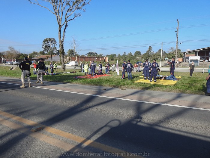 Na tarde desta quinta-feira (04) foi encerrado com êxito o simulado regional de atendimento de acidente de trânsito com múltiplas vÃtimas, realizado na rodovia BR 116, Km 08 em Mafra.