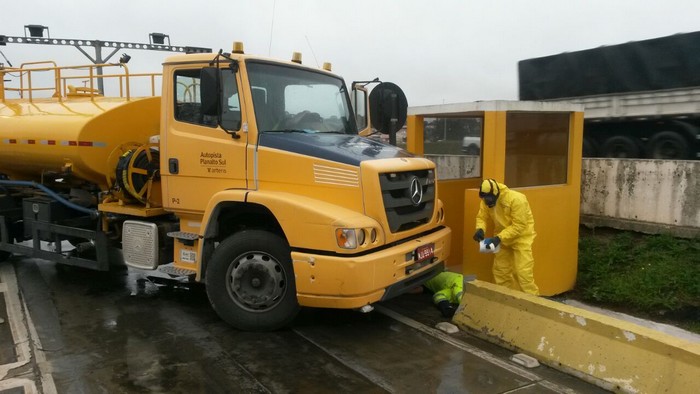 As equipes de atendimento pré-hospitalar da concessionária, e os bombeiros farão o atendimento ao acidente utilizando equipamento nÃvel A e as técnicas aprendidas na parte teórica, em treinamento realizado pela Defesa Civil, no dia 31/07, no auditório da PolÃcia Rodoviária de Mafra.