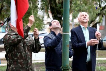 Após o hasteamento das bandeiras, ao som do Hino Nacional Brasileiro, o Prefeito declarou oficialmente aberta a Semana da Pátria. “Que o início da Semana da Pátria faça florescer nos corações de todos o patriotismo que significa muito para nossa nação e que o resgate histórico, conciliado com a nossa Festa das Etnias, sejam eventos abençoados por Deus”, declarou.