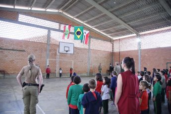 Ao todo 72 alunos – do 1º ao 5º ano – participaram do projeto, que durou três meses, com a finalidade de aproximar, através de noções de civismo e disciplina, a Polícia Militar, a família e a escola.