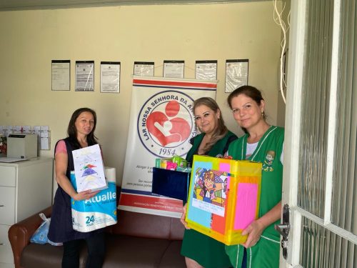 Como resultado das atividades desenvolvidas em sala e da coleta realizada com o apoio dos familiares dos alunos, fizeram a entrega de produtos de higiene às crianças acolhidas pelo Lar Nossa Senhora da Anunciação, localizado no Bairro Vila Nova. O ato foi representado pela professora Andrea na companhia da coordenadora Mirian. As professoras agradecem a todos os alunos e pais que participaram desta campanha.