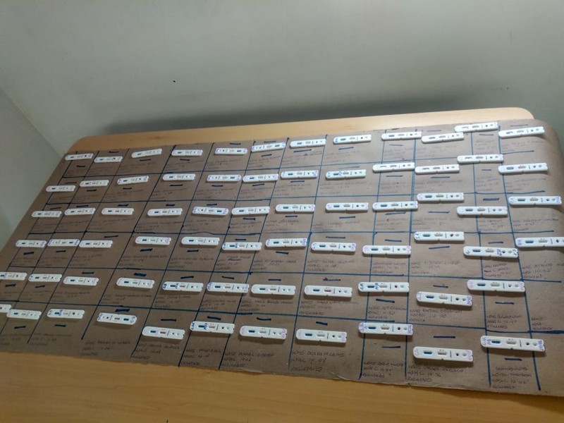 Os exames apontam se as pessoas tiveram ou não contato com o vÃrus, sendo realizados com o uso de amostras de sangue, utilizando uma metodologia para identificação de anticorpos. Os testes rápidos foram enviados pelo Ministério de Saúde direcionados para esta ação.