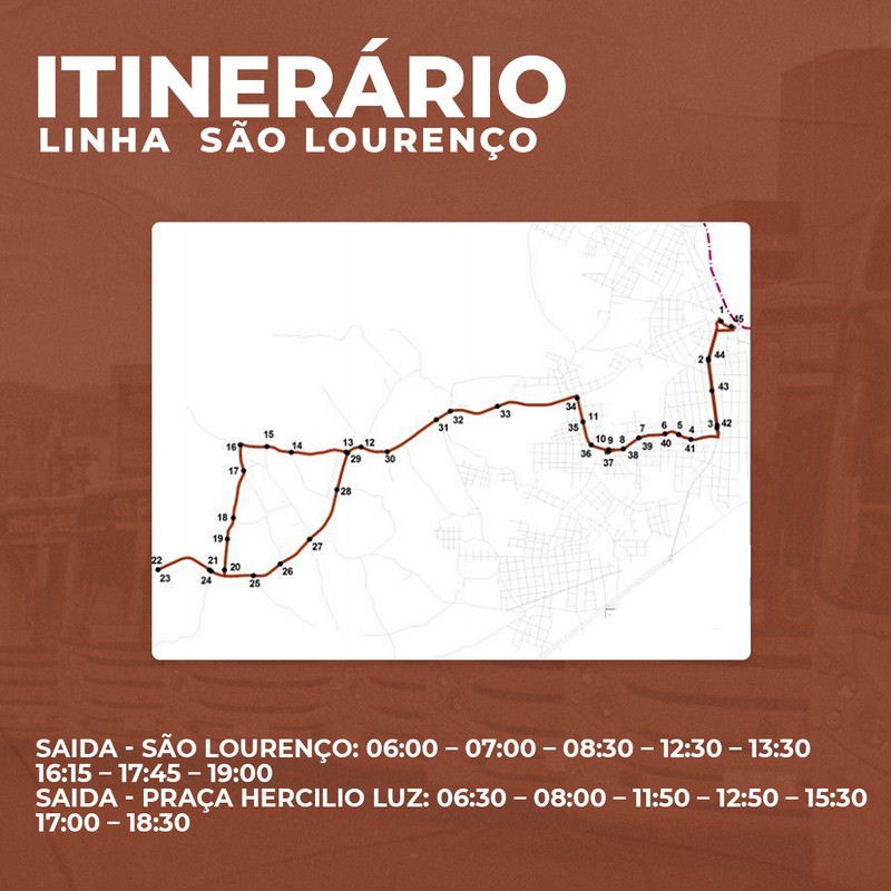 | LINHA SÃO LOURENÇO | SAÍDA SÃO LOURENÇO | SAÍDA PRAÇA HERCÍLIO LUZ |