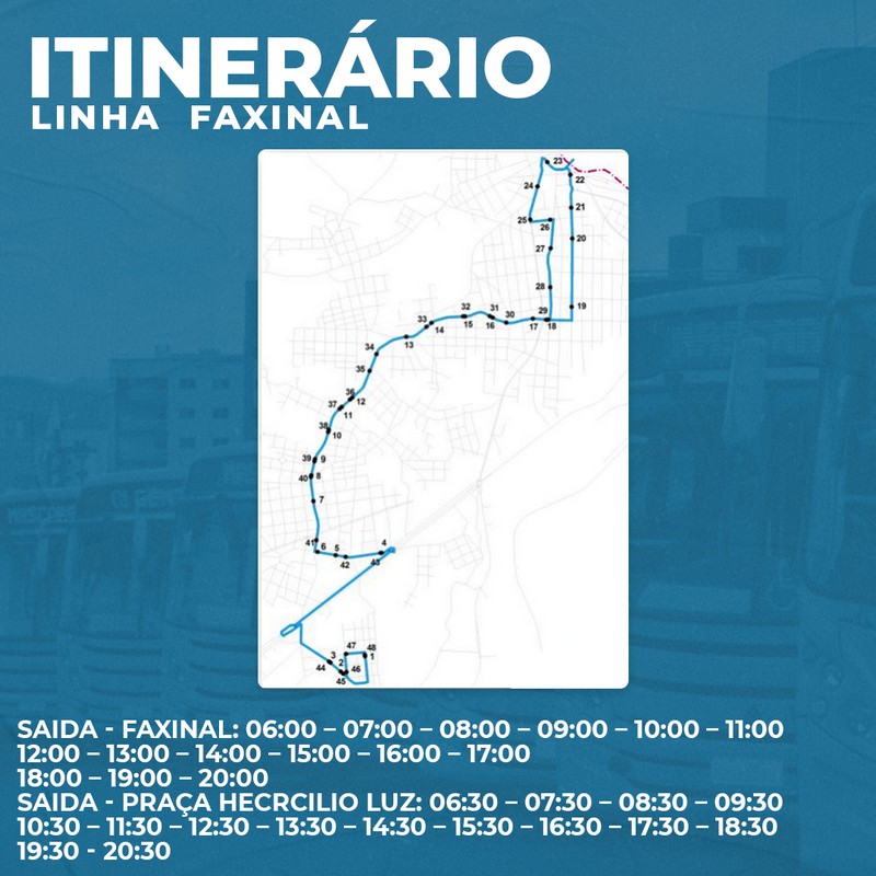 | LINHA FAXINAL | SAÍDA FAXINAL | SAÍDA PRAÇA HERCÍLIO LUZ |