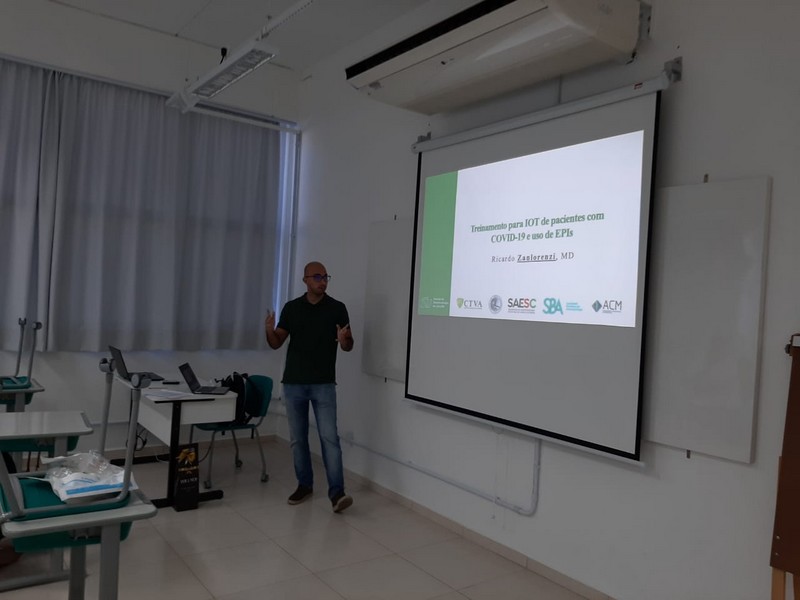 Na última sexta-feira 03, aconteceu o “Treinamento Intubação Orotraqueal e EPI’s (Equipamentos de Proteção Individual) e ventilação mecânica básica” nas dependências da UnC-Mafra, com o objetivo de capacitar médicos, tanto os já atuantes como os não atuantes em pronto atendimento, em procedimentos emergenciais para garantir as vias aéreas dos pacientes portadores de covid-19, como intubação orotraqueal, traqueostomia de emergência, ventilação mecânica, além de colocação/retirada segura de EPI’s.