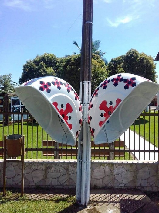 Telefones públicos localizados em frente à Paróquia Sagrada Família em Iracema são restaurados com pintura Ucraniana