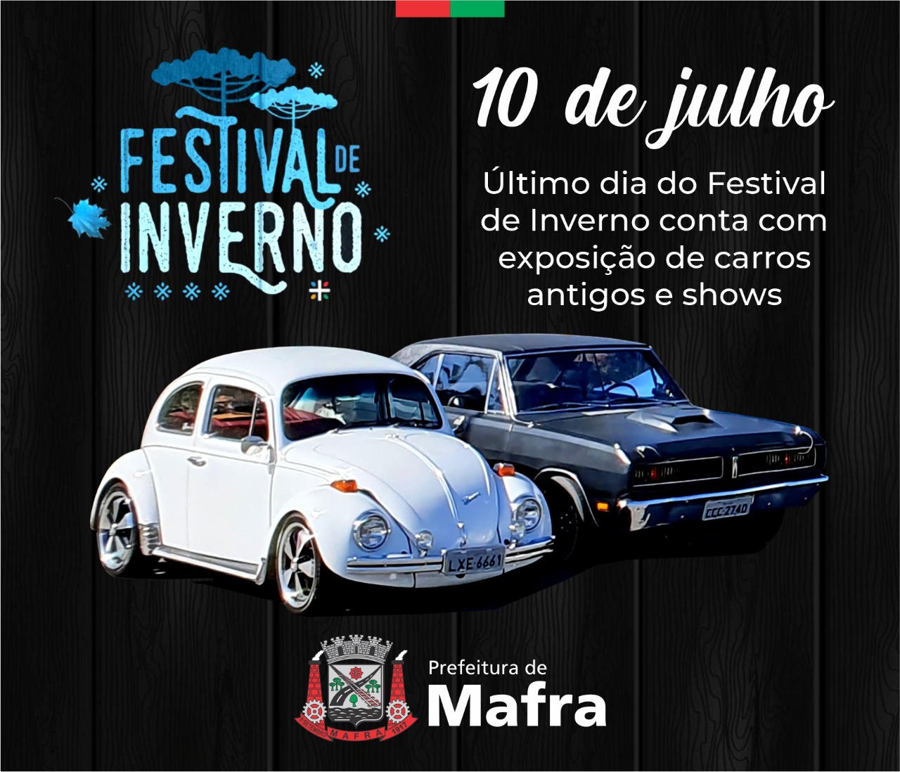 Depois de dois dias de intensas atrações, o Festival de Inverno encerra-se neste domingo, dia 10, trazendo lazer e entretenimento para toda famÃlia. A partir das 11 horas, a Praça Ferroviário Miguel Bielecki ficará repleta de carros antigos como fuscas, opalas, caravans, caminhonetes e muitos outros automóveis de décadas passadas.