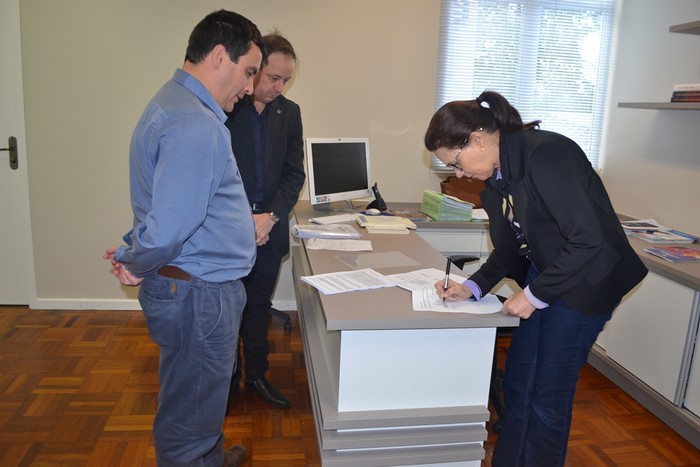 Participaram do ato de assinatura, a reitora Solange e o Diretor da Maternidade, Jeferson Lopes, o Pró-reitor de Administração e Planejamento, Luciano Bendlin.
