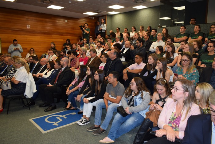 O plenarinho da Alesc esteve lotado com a presença de estudantes, deputados e os reitores das instituições de ensino superior pertencentes ao sistema ACAFE. O secretário da Casa Civil, Douglas Borba, representando o governador do estado, Carlos Moisés, e o secretário da Educação, Natalino Uggioni, participaram do evento.