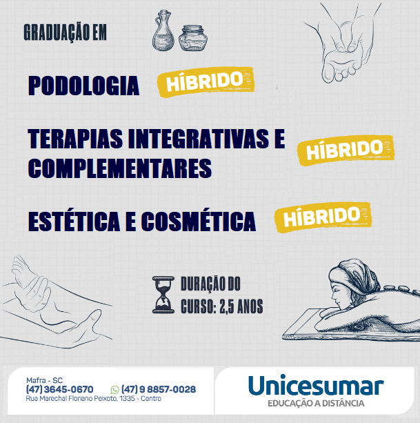 A Unicesumar de Mafra está com inscrições abertas para diversos os cursos hÃbrido.