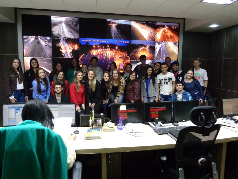 A turma de 40 alunos também visitou o Centro de Controle Operacional (CCO), onde puderam ver trechos da rodovia através das câmeras e um pouco do atendimento aos usuários, acompanhados pela supervisora do CCO, Kátia Bueno.