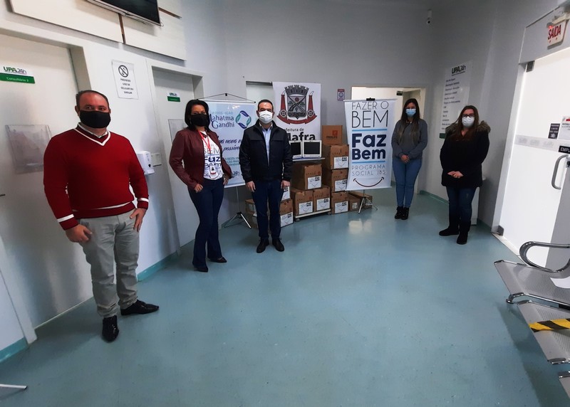 Nesta terça-feira (25), a Unidade de Pronto Atendimento (UPA) de Mafra recebeu 10 monitores de sinais vitais e o Hospital São Vicente de Paulo mais três, doados pela JBS. O prefeito Wellington Bielecki, acompanhado da secretária de saúde, Jaqueline Fátima Previatti Veiga, agradeceu novamente à empresa pelo apoio neste momento de pandemia. “Esses monitores serão muito úteis no combate à doença, pois estamos nos preparando cada vez mais para o pior, mas com a esperança de que aconteça o melhor. A JBS adotou Mafra não só trazendo a geração de emprego e renda, mas sendo solidária e dando apoio neste momento de pandemia”, disse o prefeito.