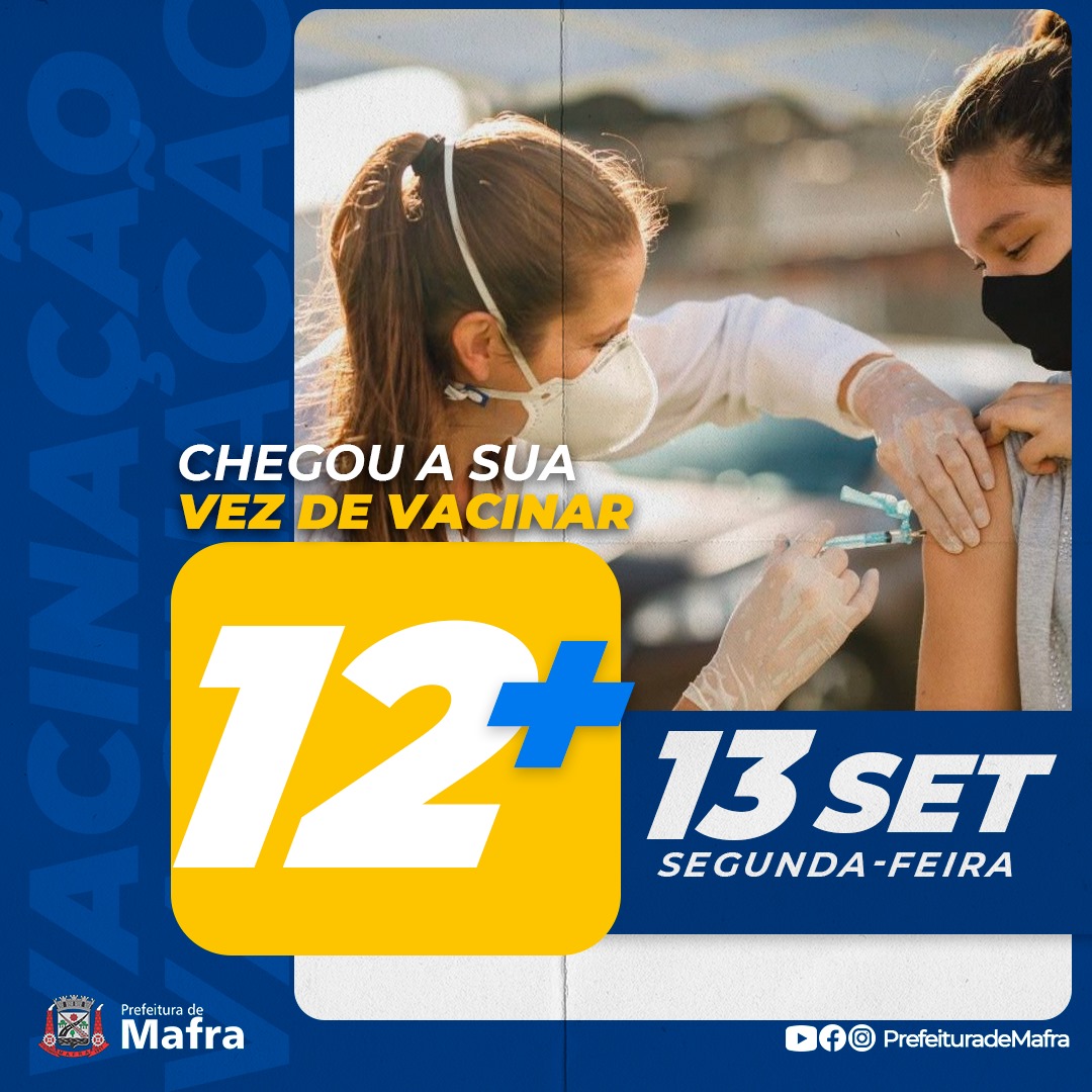 A imunização contra COVID-19, para adolescentes de 17 a 12 anos, com doses da Pfizer inicia em Mafra na próxima segunda-feira, dia 13, em todos os postos de saúde com sala de vacina.