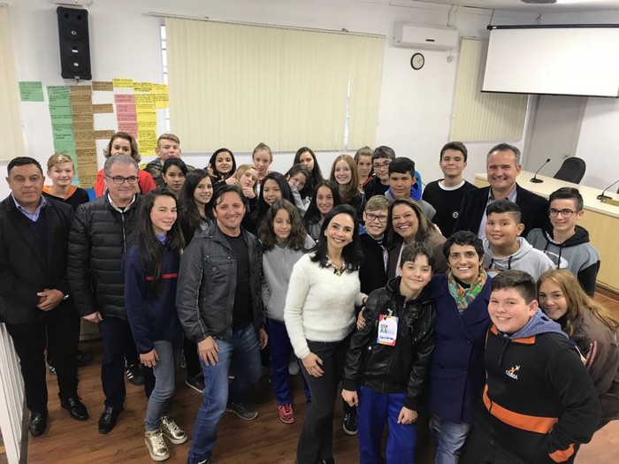 Os vereadores Adilson Sabatke (PP), Cirineu Corrêa Cardoso (PDT), Claudia Bus (PTB), Dimas Humenhuk (PTB), Edenilson Schelbauer (PSB), Marise Bráz de Oliveira (MDB) e Valdir Sokolski (PSB) participaram e acompanharam os trabalhos da Câmara Mirim.