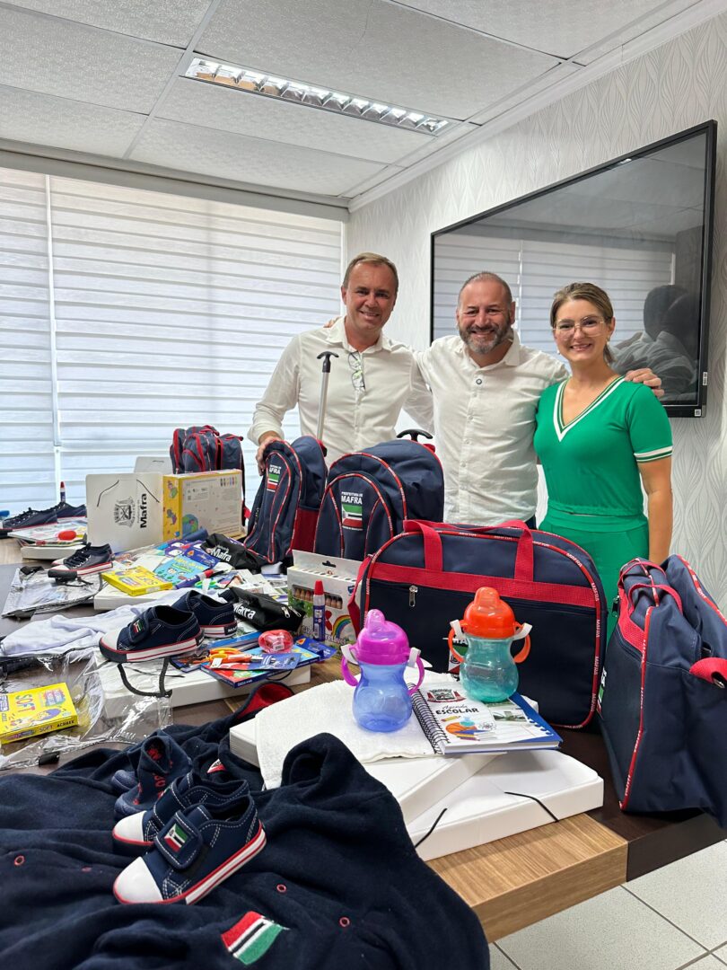 – MATERNAL I E II: 1 agenda escolar, 1 caderno de desenho, 1 caixa de lápis de cor, 1 caixa de lápis de cera, 1 caixa de massa de modelar, 1 tesoura escolar, 1 tubo de cola, 1 apontador, 1 borracha, 1 lápis grafite, 1 avental, 1 estojo escolar  e 1 pasta para montagem do kit, alem do uniforme contendo calça, camiseta, tênis e mochila de rodinha. Em março os alunos receberão moletom de inverno.