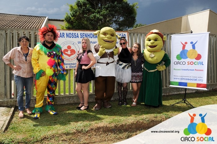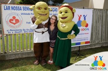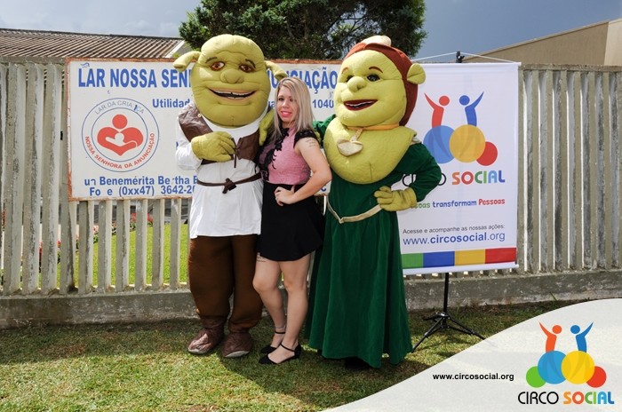 Além do lanche, houve muita conversa entre os voluntários e os moradores do Lar da Georgete, além de músicas, danças, contação de histórias e a presença do Shrek e Princesa Fiona, que animaram ainda mais o evento.