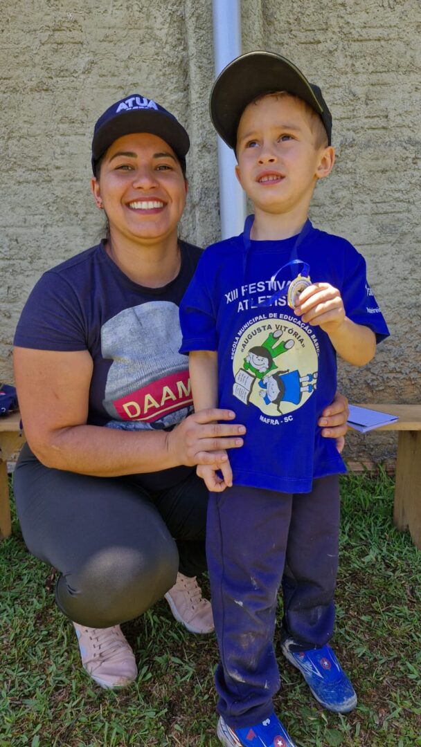 O aluno do Pré II, Vinícius Devojatzki, 4 anos, acompanhado da mãe Jéssica Veneski, disse que “gostou muito de correr e ganhar uma medalha”. Para a mãe, esse tipo de evento ajuda as crinaças a se interessarem pelos esportes desde cedo. “A escola sempre está incentivando e isso ajuda também as crianças a perderem a timidez”, disse.