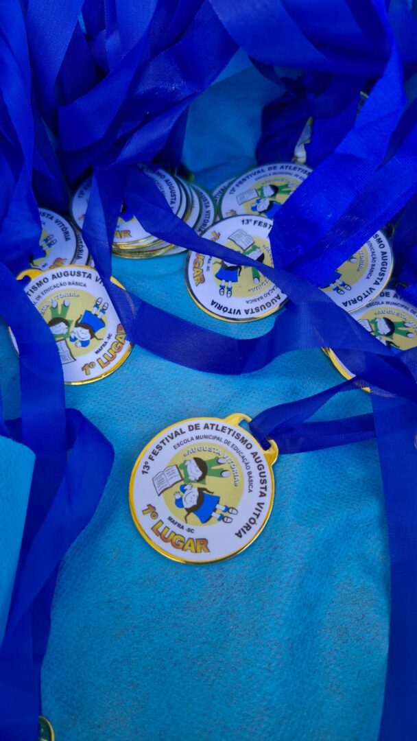 O tradicional Festival de Atletismo Augusta Vitória reuniu cerca de 200 alunos atletas nesta quarta-feira, dia 19, em sua 13ª edição. O evento reúne anualmente atletas das comunidades do interior e de diversas outras escolas. Os alunos do 1º ao 5º anos participaram das disputas nas modalidades de corrida 50m, 150m e 200m, lançamento de pelota, salto em altura e em distância, nas categorias masculino e feminino. Foram premiados com medalhas os três primeiros lugares e os alunos participantes. Da escola anfitriã – EMEB Augusta Vitória -, os alunos do maternal, Pré I e II puderam participar da corrida de 50 metros, para não ficarem de fora deste festival.