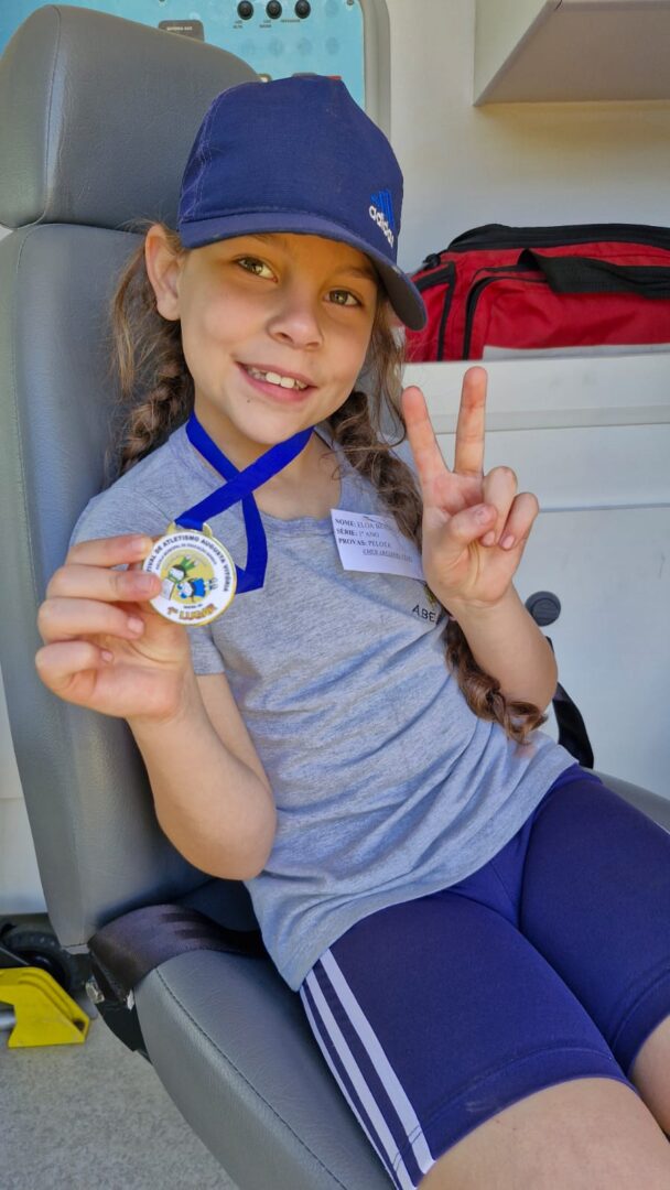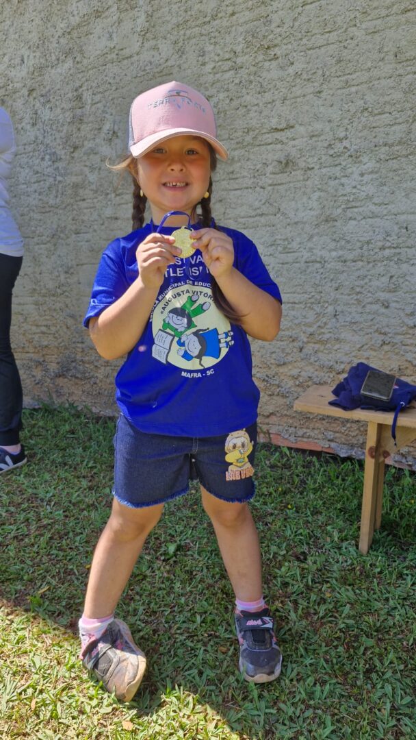 As alunas do 1º ano, Eloá Betariz Peters e Isabelli Aparecida Eckert, da EMEB Professora Iracema Peters Toso, contaram que praticam atletismo nas aulas de Educação Física. “Acho legal e divertido. Hoje arremessei longe e vim para ganhar”, declarou Eloá que conquistou o 1º lugar no lançamento de pelota. “Gostei de participar e gostei muito mais foi de correr”, completou Isabelli que ficou com o 3º lugar nos 50 metros.