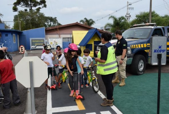 Alunos aprendem sobre segurança viária na Mini Cidade de Trânsito