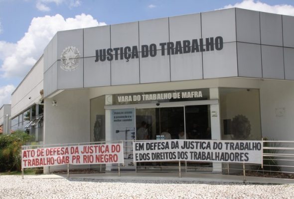 Servidores e advogados fazem manifestação em favor da Justiça do Trabalho em Mafra