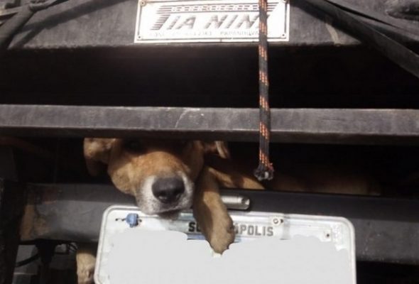 Ao sair de casa cidadã percebe que havia um cachorro preso em seu veículo em Itaiópolis