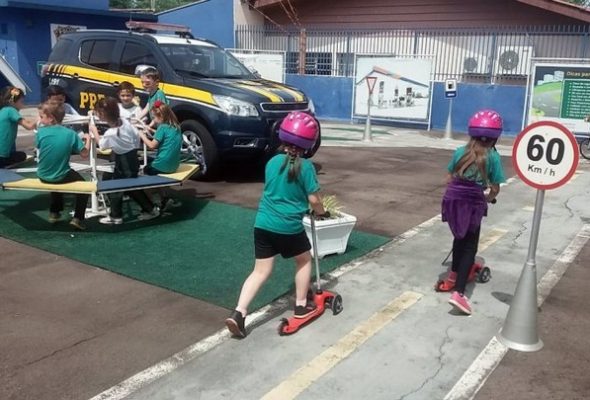 Crianças vistam escolinha de trânsito e aprendem brincando em Mafra