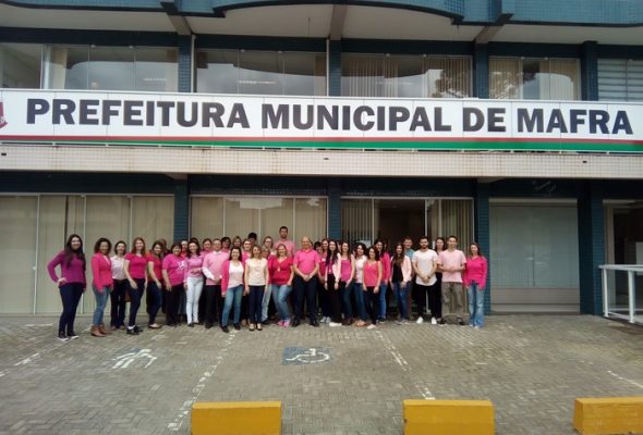 Servidores do prédio administrativo vestiram rosa em apoio ao Outubro Rosa