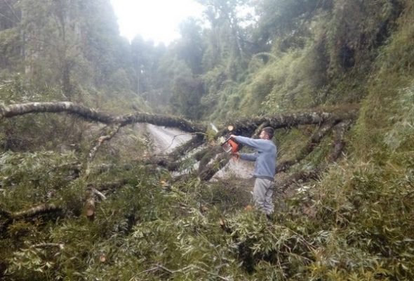 Prefeitura retira árvore que bloqueava a passagem de veículos no interior