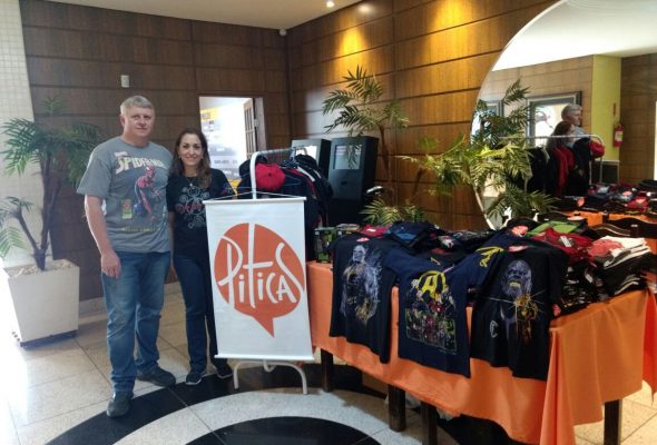 Venda de camisas dos Vingadores no Cineplus Emacite