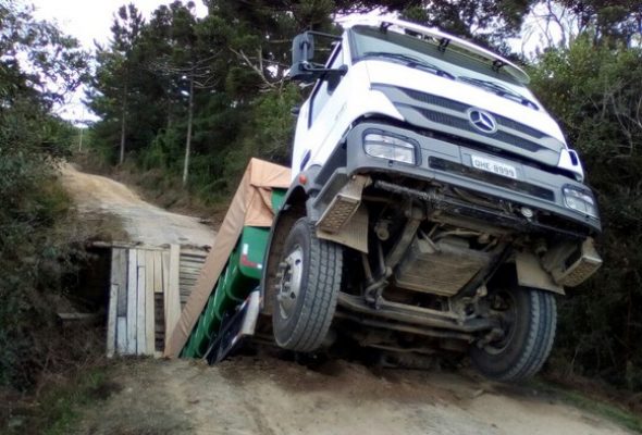 Ponte na divisa de Mafra com Itaiópolis desaba com caminhão em cima
