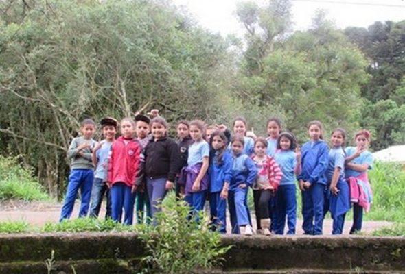 Alunos da escola Professor Gunther Urban assistem filme de bang-bang gravado em Campo do Tenente ...