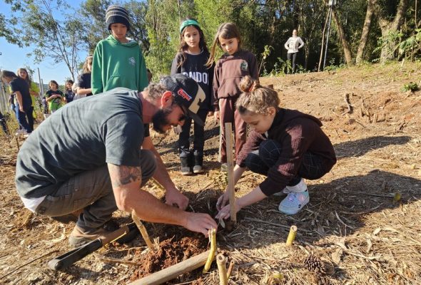 Crianças do projeto Futuro Integral participam de plantio de árvores em Rio Negro