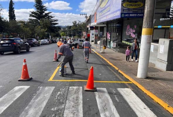 Prefeitura realiza sinalização indicativa de carga e descarga nas ruas centrais de Mafra