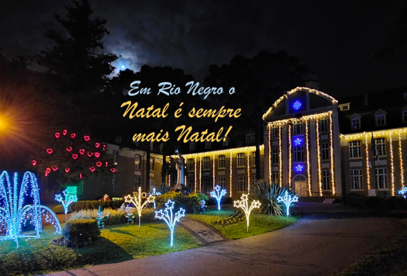 Público pode tirar fotos noturnas na decoração natalina do seminário de Rio Negro
