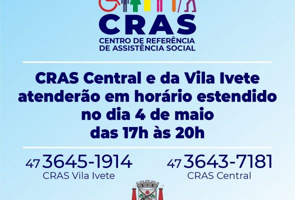 Horário estendido hoje nos CRAS Central e da Vila Ivete