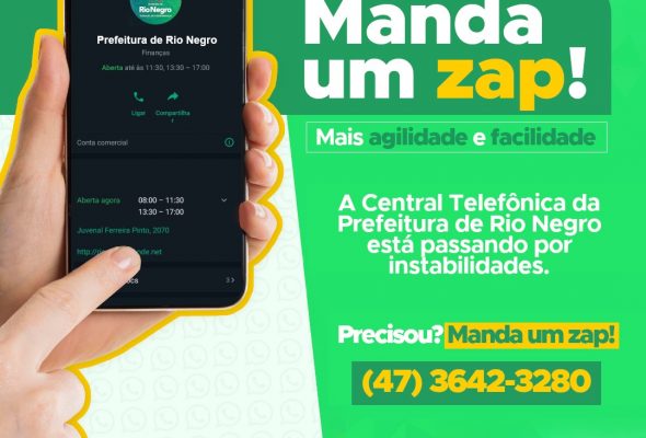 Prefeitura de Rio Negro oferece atendimento facilitado pelo WhatsApp e Internet