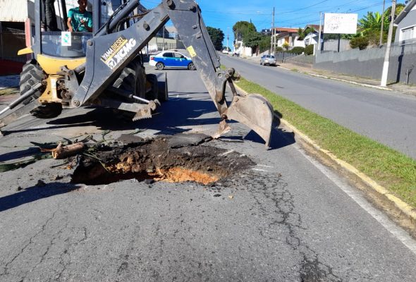 Prefeitura interdita parte da Rua Saturnino Olinto após asfalto ceder