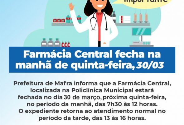 Farmácia Central terá horário diferenciado nesta quinta-feira, dia 30 de março