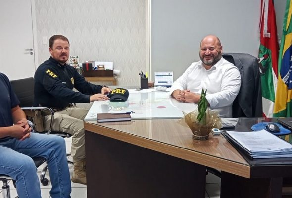 Prefeito Maas recebe Comandante da PRF de Mafra e representante da Arteris