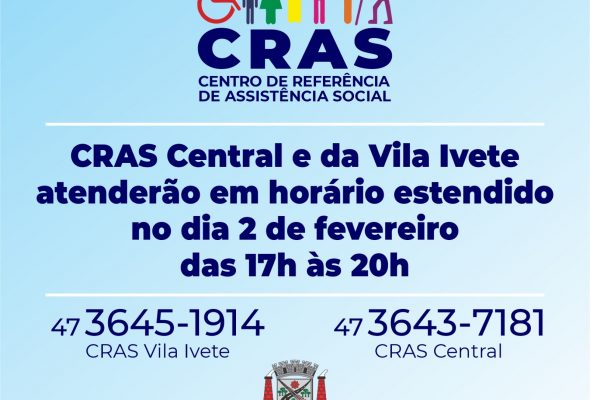 CRAS Central e da Vila Ivete atenderão em horário estendido no dia 2 de fevereiro
