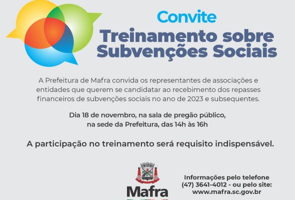 Prefeitura de Mafra realizará curso sobre subvenções sociais