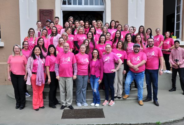 Servidores da Prefeitura de Rio Negro vestem rosa em apoio ao Outubro Rosa