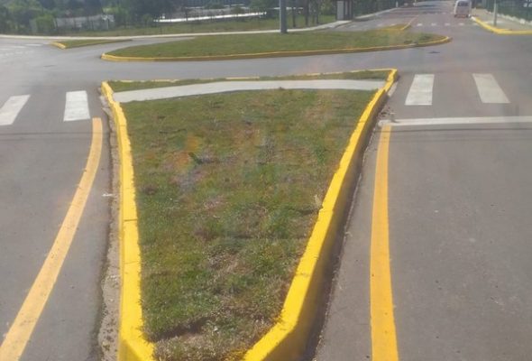 Secretaria de obras de Rio Negro realiza pinturas na nova rotatória