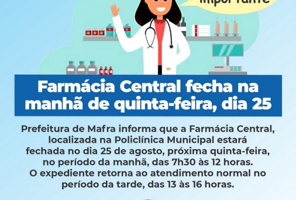 Farmácia Central de Mafra fecha na manhã de quinta-feira, dia 25