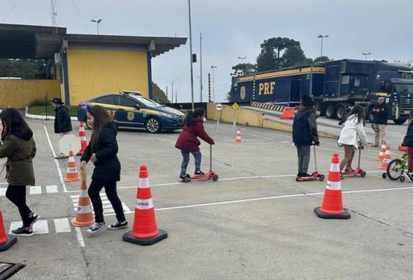 Alunos de Rio Negro visitam a Carreta Cinema Rodoviário da PRF