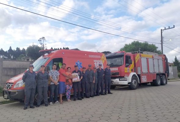 Corpo de Bombeiros entrega donativos à família vítima de incêndio em Mafra